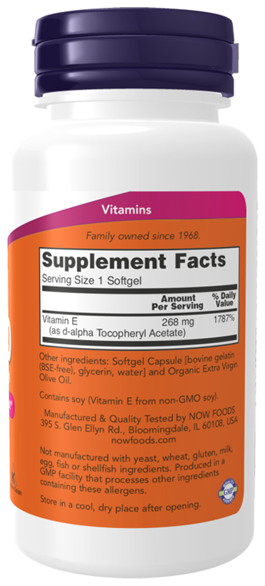 | NOW Витамин E-400 d-альфа-токоферил, 100 кап |