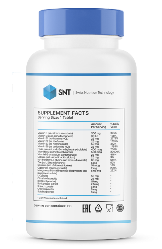| Витамин B12 (как метилкобаламин) | 500 мкг | 20000% |